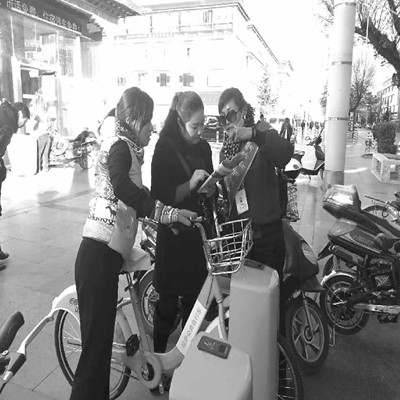 租賃公共自行車的程式簡單便捷,拉薩市民和外地游客只需符合年齡在16周歲以上65周歲以下的條件,持本人身份證或戶口本原件及復(fù)印件,交200塊錢押金并充值100元,就可以申領(lǐng)一張公共自行車租賃卡。租賃的收費也相當(dāng)優(yōu)惠,1小時內(nèi)免費,1小時以上至2小時收費1元,依次疊加,一天可以多次租借,而且每次租借的時間不累加。目前,拉薩市在布達拉宮、大昭寺、小昭寺等十五個景點設(shè)置了租賃店,總共投放了242輛公共自行車,受到了市民和游客的普遍歡迎。