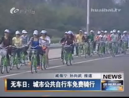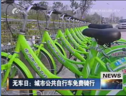 記者戚蓓寧:這里是珠山景區(qū),在我身旁的是我市剛剛建成的公共自行車停車站點(diǎn),大家能看到50輛嶄新的綠色自行車停在這里格外醒目,今天恰逢世界無車日,這里將要舉行的是市民免費(fèi)體驗(yàn)騎游活動(dòng)。這種綠色出行的方式及低碳環(huán)保,同時(shí)也能有效緩解城市交通的壓力。