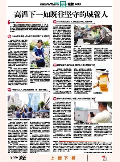 高溫的日子,是他們每年都要度過的一段時(shí)光。城管人工作之艱辛卻滿腔熱情,深為他們戰(zhàn)高溫,斗酷暑,堅(jiān)守崗位,保質(zhì)保量地完成運(yùn)營調(diào)度維修維護(hù)任務(wù),不畏艱苦、勇?lián)厝蔚姆瞰I(xiàn)精神所感動(dòng)。
