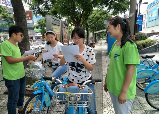 近日,常州信息職業(yè)技術(shù)學院學生自發(fā)組織的志愿者團隊在常州武進區(qū)街頭開展了暑期公共自行車使用情況的社會調(diào)查活動。