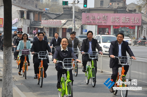 金山網(wǎng)訊 “在路上騎自行車,感覺很舒服!”昨天上午,市長(zhǎng)朱曉明騎著公共自行車,在解放路上騎行一段下車后對(duì)記者說(shuō)。隨著朱曉明、雷志強(qiáng)等市領(lǐng)導(dǎo)騎車上路,第一批1000輛公共自行車開始為市民服務(wù)。